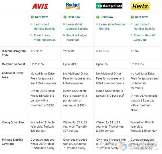 点进去就是各个租车公司给这个USAA组织的特别的website
